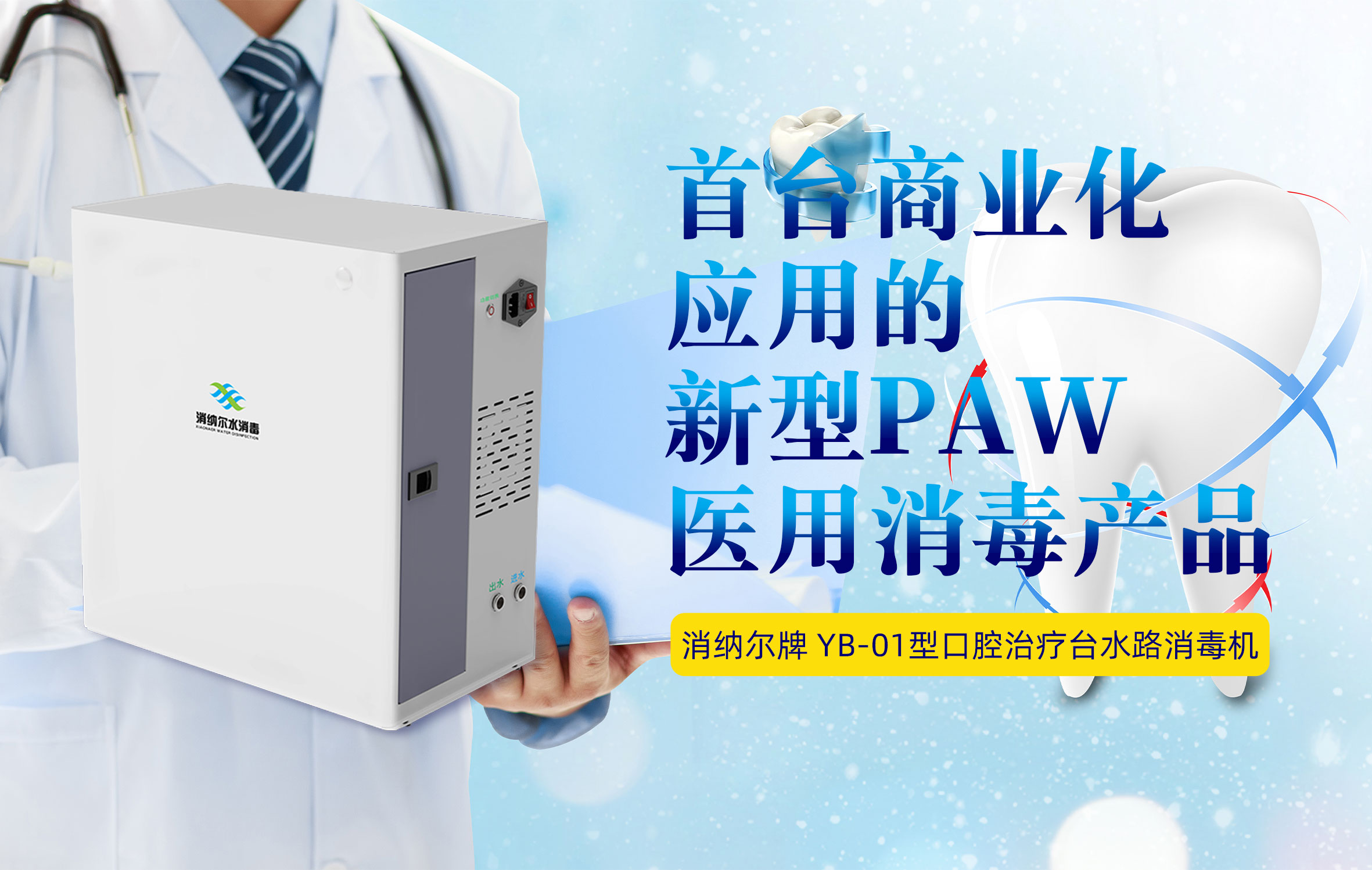 • 首臺商業化應用的新型 PAW 醫用消毒產品,消納爾牌口腔治療臺水路消毒機